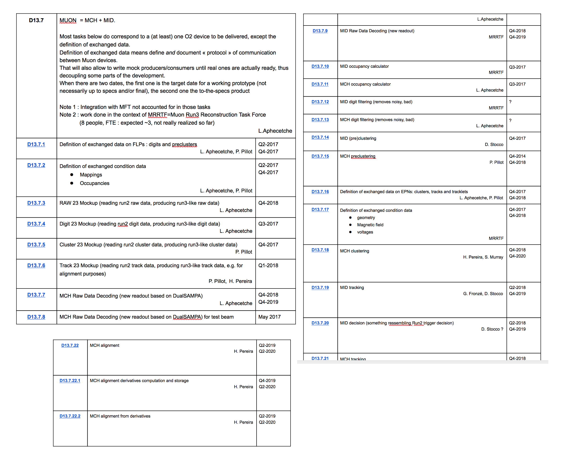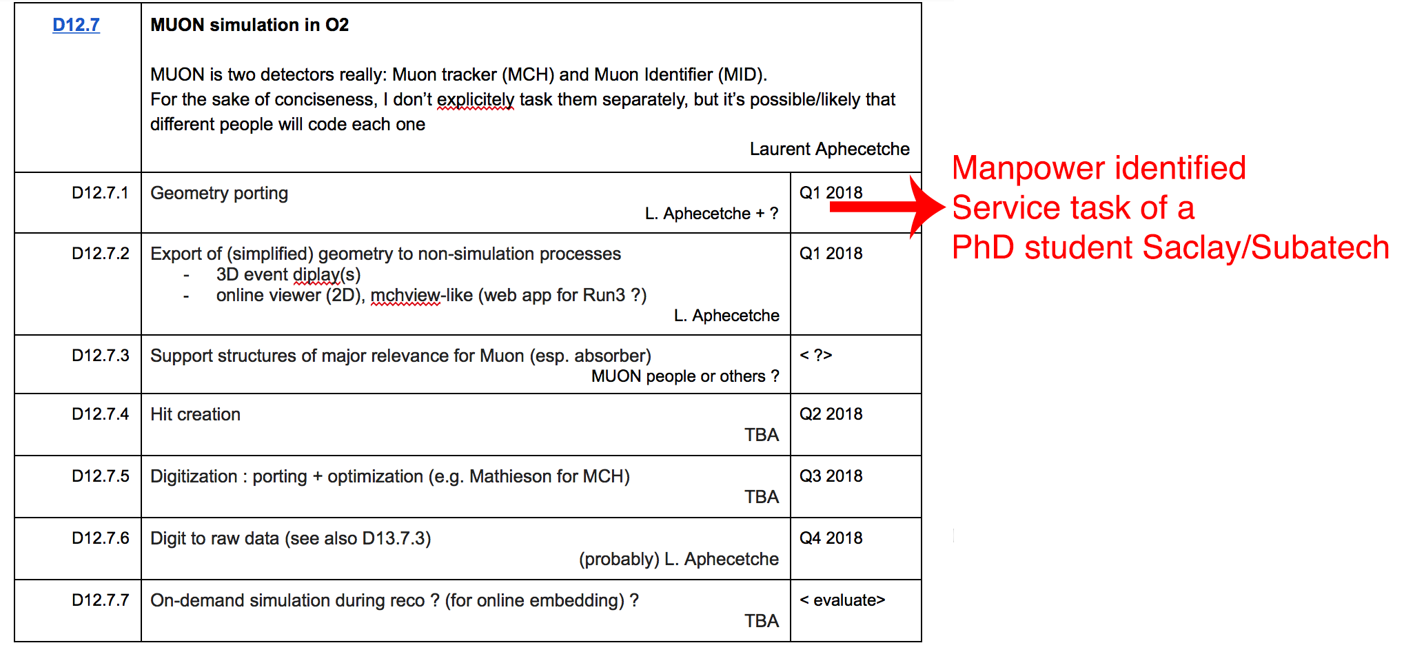 | O2 | Rec+sim (ITS,TPC) | Feb 1, 2017 | Dec 31, 2017 |